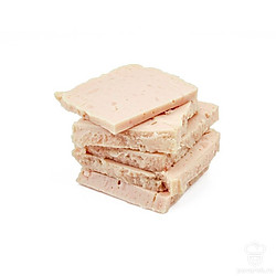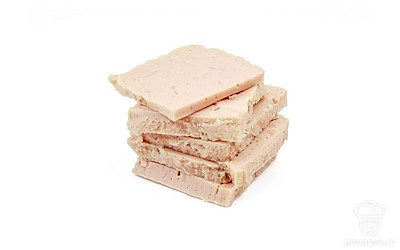 Это кусочки мяса светлого цвета, иногда в небольшом количестве бульона. Мясо мягкое, нежное, ароматное.