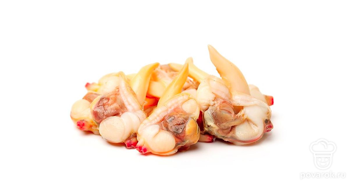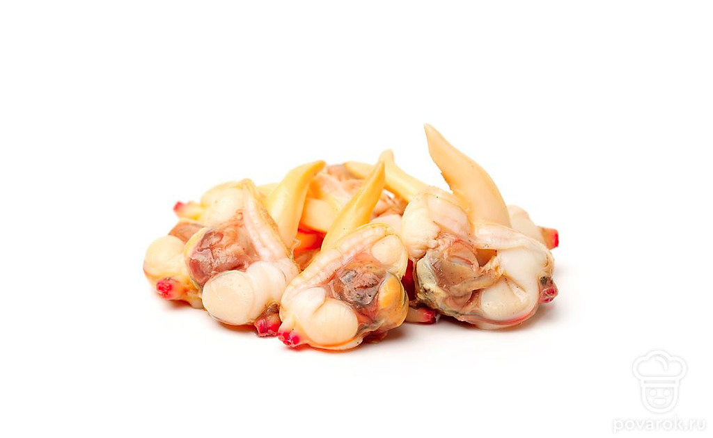 Это светлое мясо со следами рифленой поверхности (моллюск обитает в витиеватой раковине). На вкус мясо нейтральное, у него нет ярко выраженного аромата.