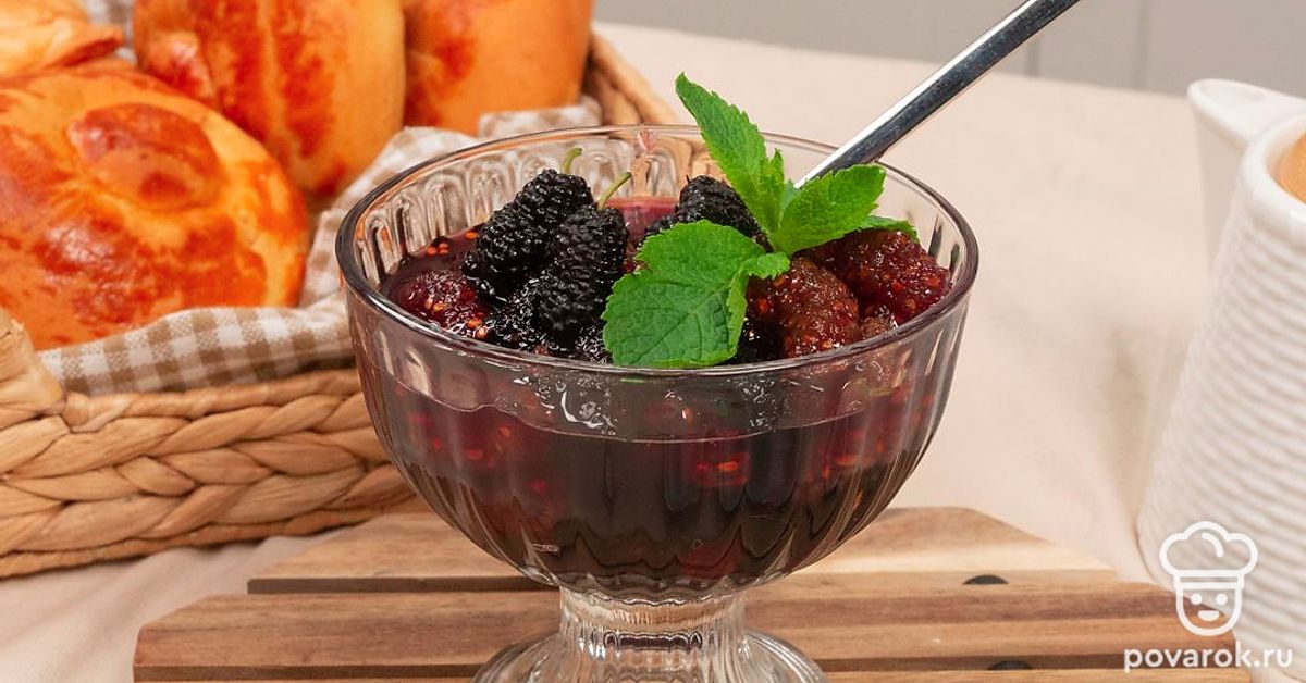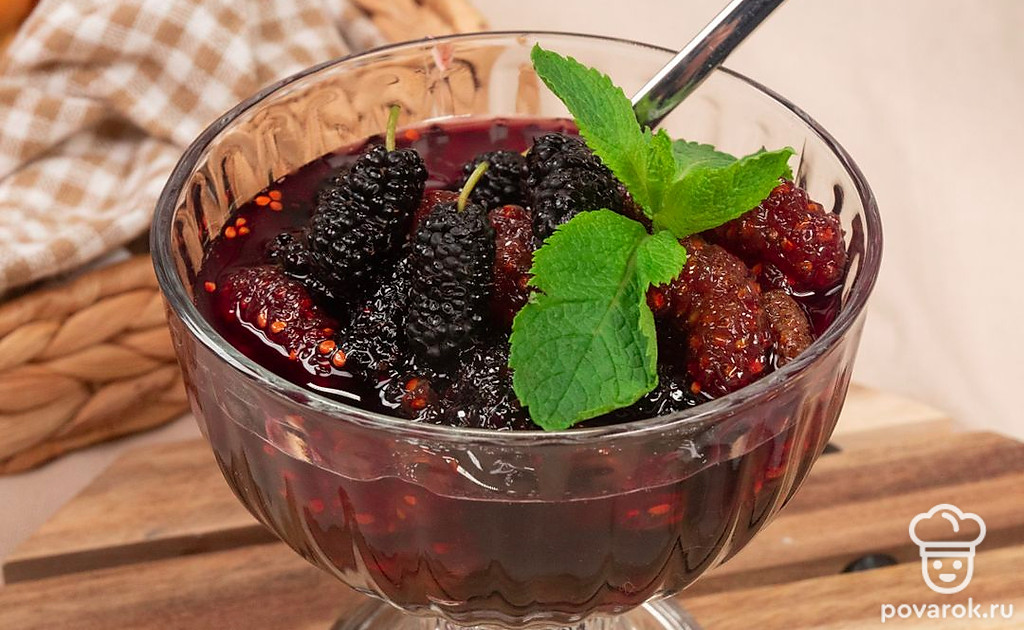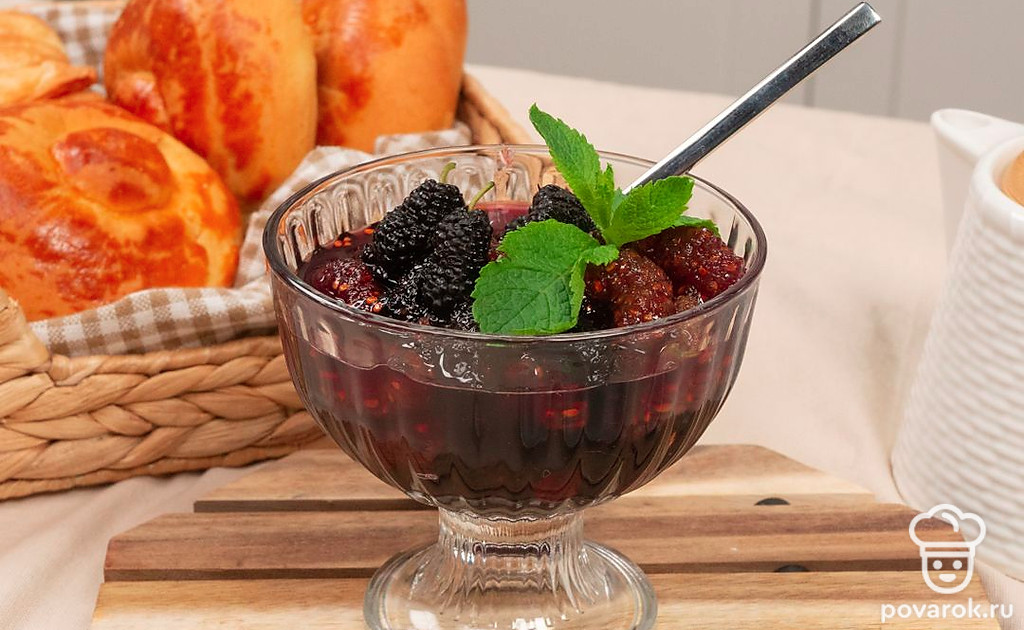 Варенье из шелковицы прекрасно подойдет на десерт к чаю. Выложите его в розетку для варенья и подайте вместе с небольшими кексами или маффинами.
