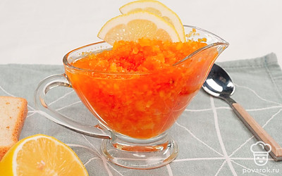 Подавайте морковное варенье в прозрачных розетках, украсив кружками лимона.