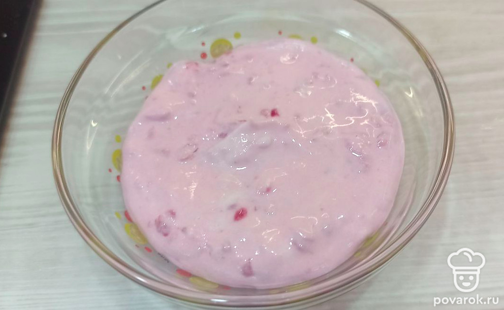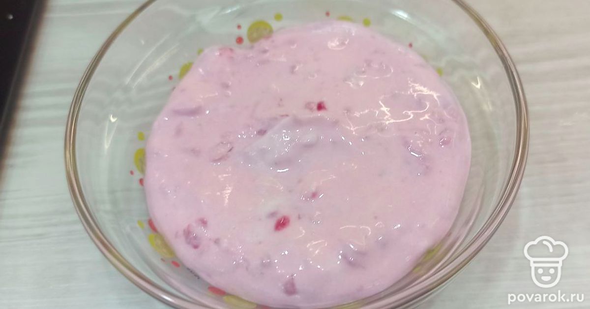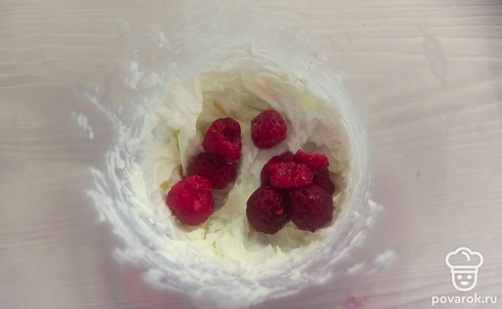Добавьте малину. Продолжайте взбивать еще пару минут.
