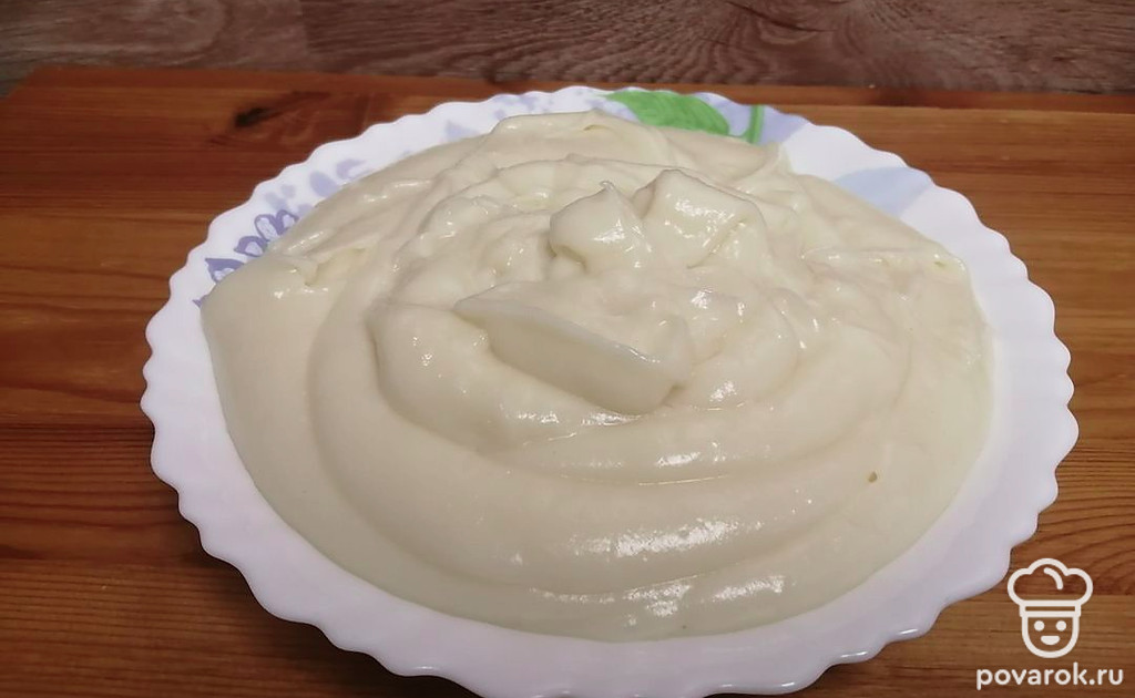 По консистенции и вкусу ничем не уступает крему, приготовленному на яйцах.