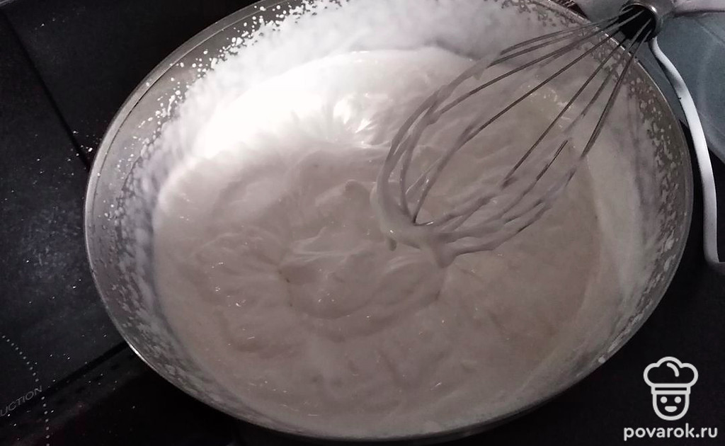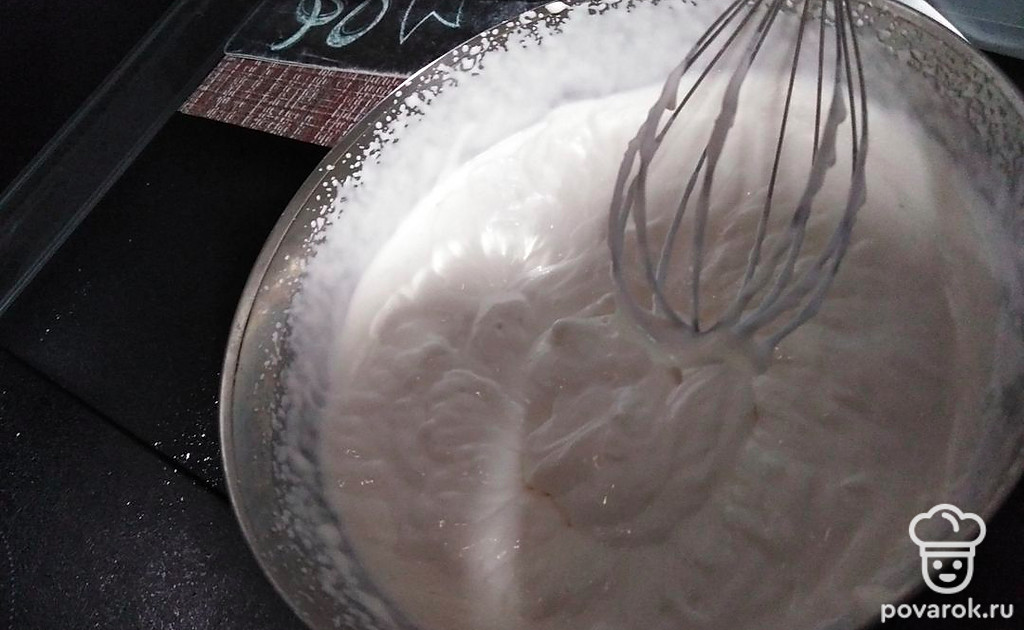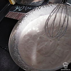 Берём сливки, выливаем в чашу, добавляем сахарную пудру. Смешиваем блендером до загустения.