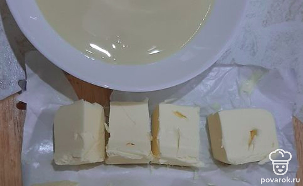 Подготовьте, пожалуйста, масло. Оно должно заранее полежать при комнатной температуре часа 3.