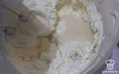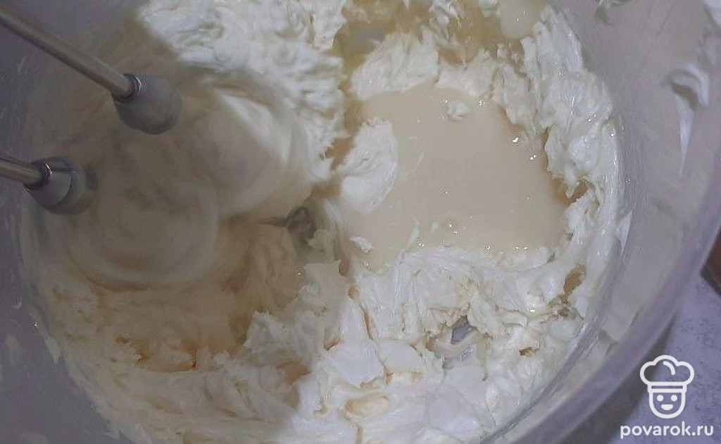 Затем добавить сгущенное молоко и хорошо перемешать.