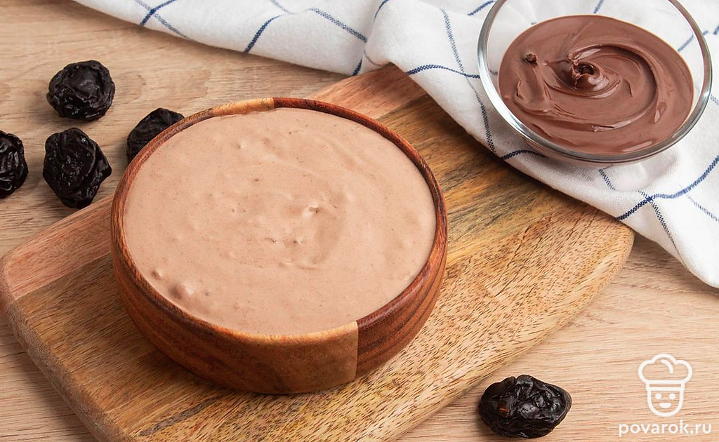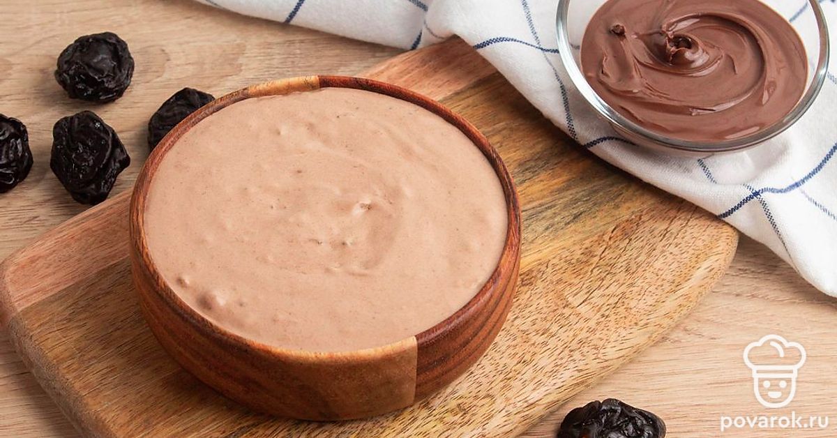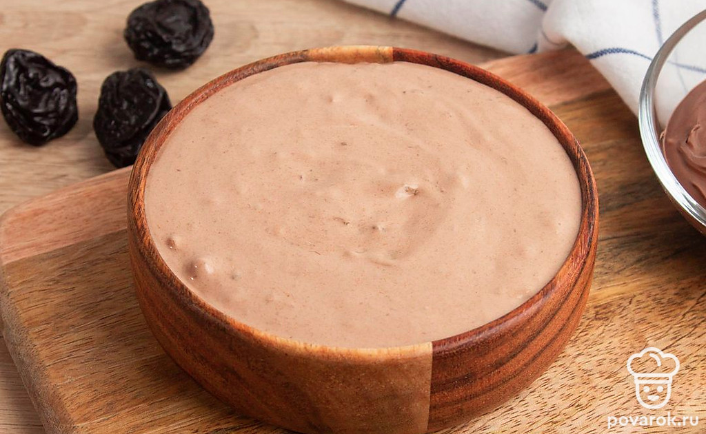 Необычный и очень вкусный крем из сливок, нутеллы, чернослива и вина. Крем имеет богатую палитру вкусов: сливочная основа, чернослив, шоколад и ароматные винные нотки. Такой крем отлично подойдет для прослойки и украшения тортов. Им можно декорировать десерты, капкейки, наполнять круассаны — в общем, всё, на что хватит вашей фантазии. Ну а если вы готовите крем для детей, то просто замените вино в составе на вишневый сок.