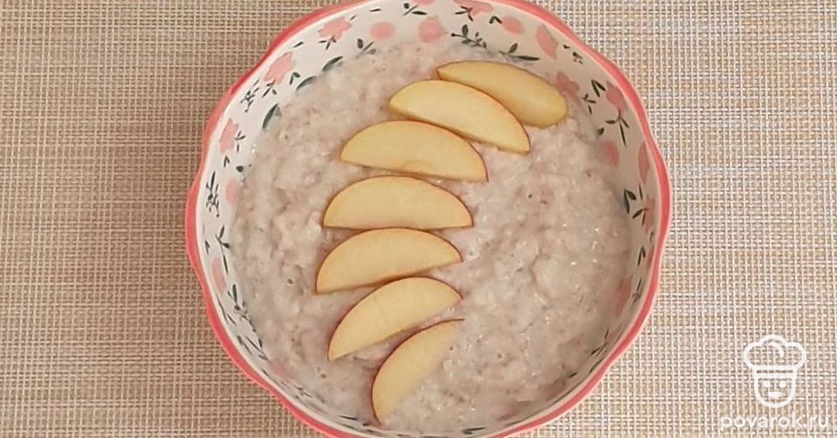 Кашу подавайте порционно. Сверху выложите яблоки. Приятного аппетита.