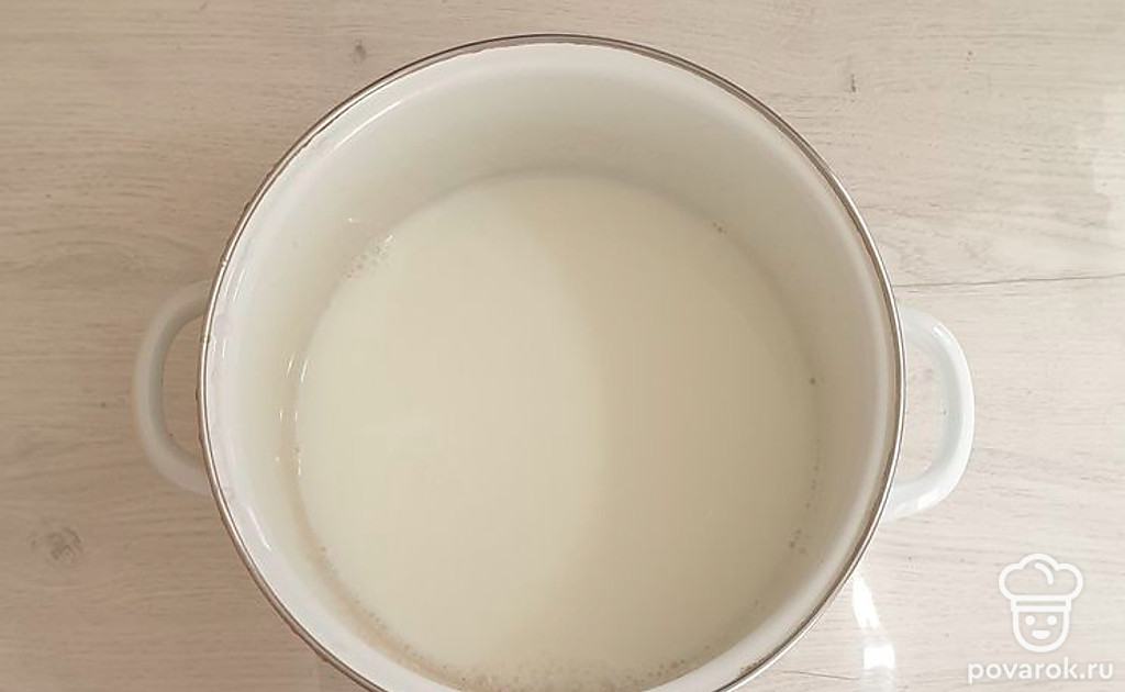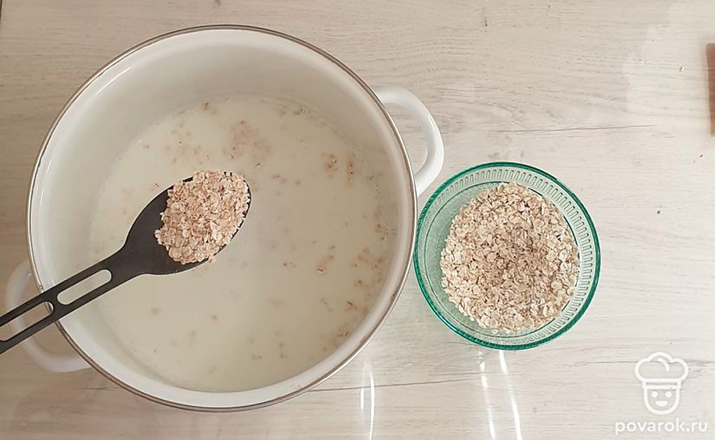 К молоку всыпьте овсянку. Варите на медленном огне, периодически помешивая, 5-7 минут.