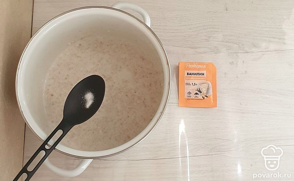 Затем всыпьте ваниль, перемешайте. Варите еще 1 минуту.