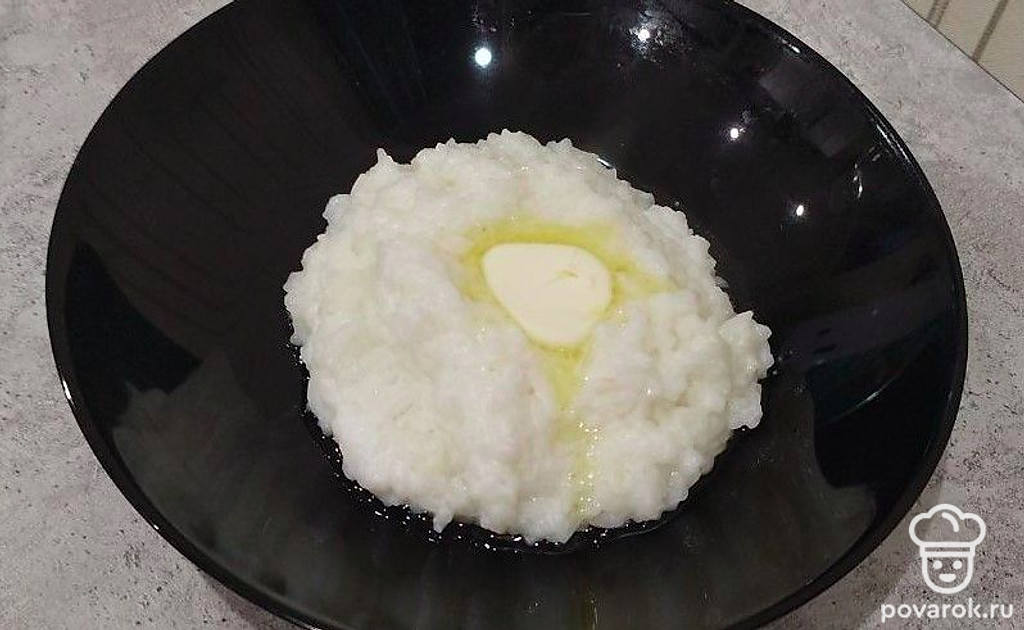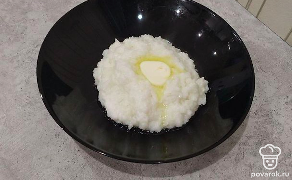 Кашу выложите на тарелку. Добавьте растительное масло и все хорошо перемешайте.