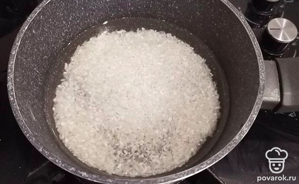 Рис промойте под проточной водой до тех пор, пока вода не перестанет быть мутной. Далее залейте водой и оставьте вариться, пока полностью не выкипит вода.