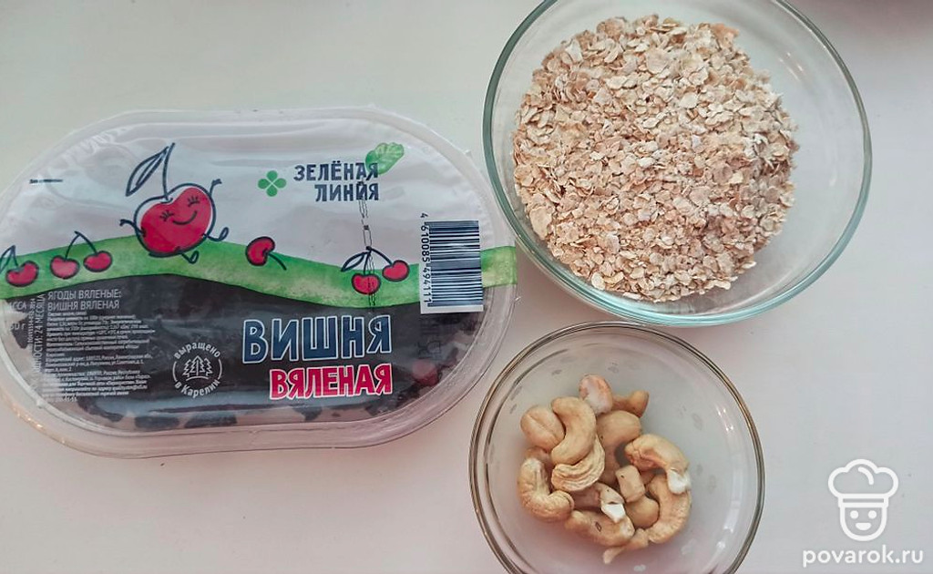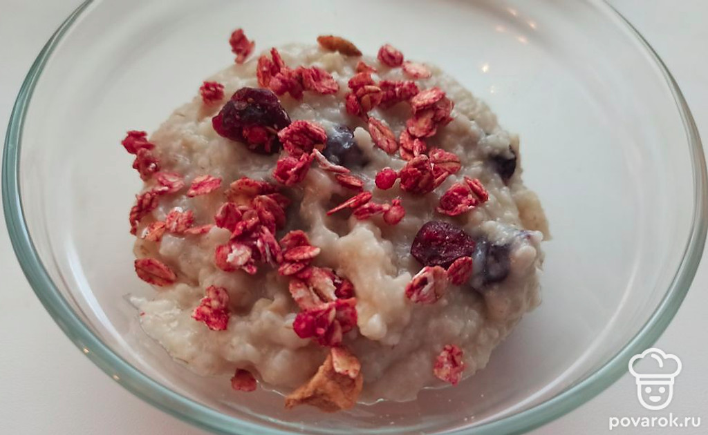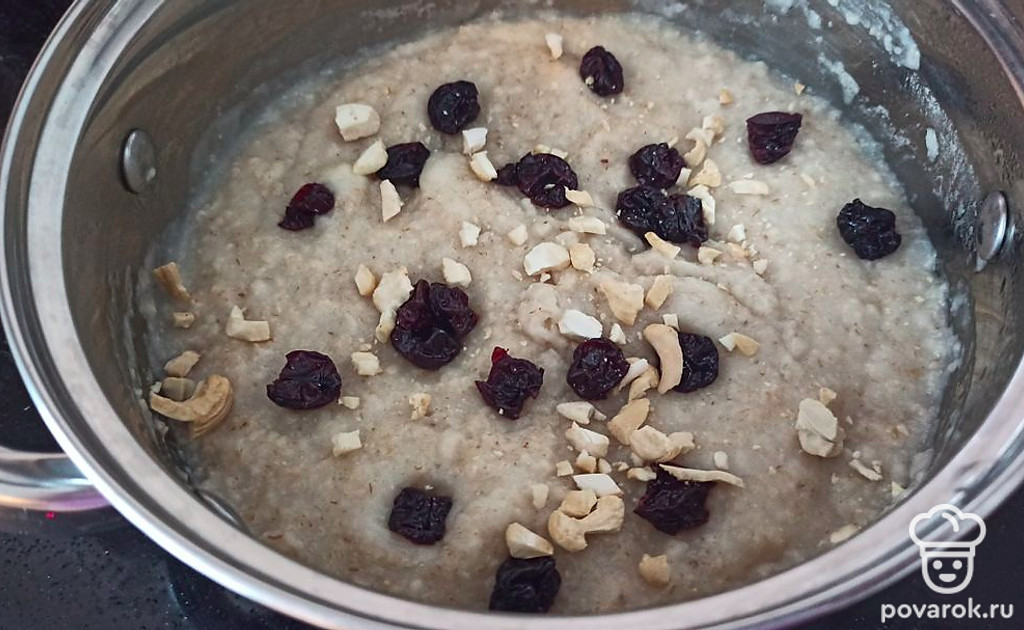 Вкусная и полезная каша к завтраку. Вяленая вишня отлично сочетается с овсяными хлопьями.