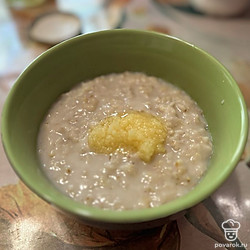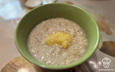 Когда каша загустеет, выключите плиту и выложите кашу в тарелку. Вы можете добавить любой топпинг, будь то мед, варенье, орехи или фрукты. Экспериментируйте. Приятного аппетита!