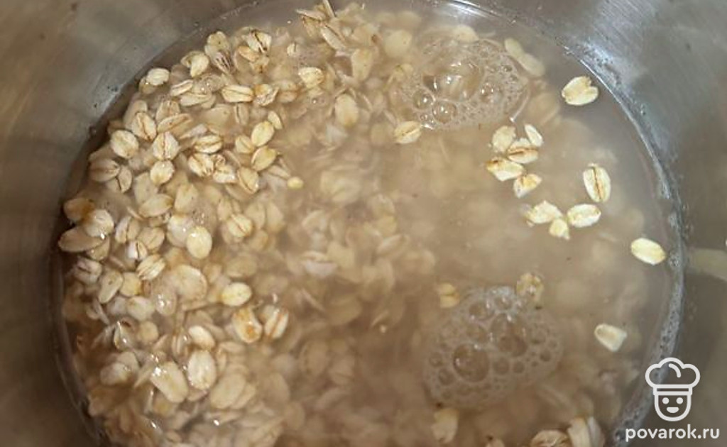 Залейте овсянку водой и поставьте кастрюлю на плиту.