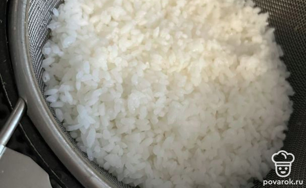 Откиньте рис на сито, дайте стечь воде.