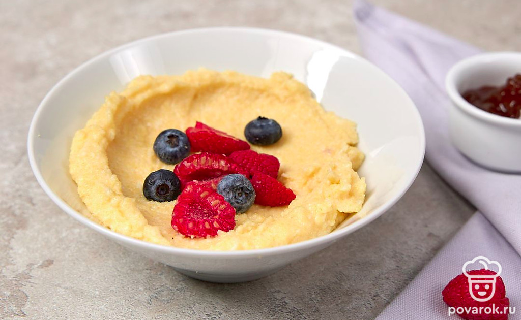 Кашу из кукурузной крупы можно готовить и на завтрак, и на ужин, и на гарнир к мясу — это по-настоящему универсальное блюдо. Разваренная кукуруза отлично сочетается и со сладкими, и с солеными добавками. В этом рецепте каша варится на молоке и больше подойдет для завтрака, но можно заменить молоко водой. Для каши подойдет как крупная крупа, так и мелкого помола. Последняя сварится быстрее и придаст блюду более однородную и мягкую текстуру.