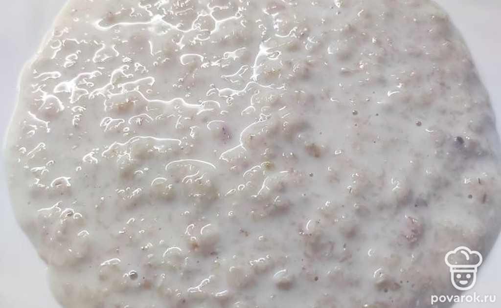 Как только молоко закипит, всыпать овсянку, соль и сахар, убавить огонь и, все время помешива, варить 5 минут. После накрыть крышкой и дать настояться 5 минут.