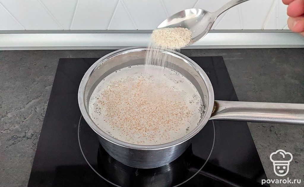 В кастрюлю влить молоко и воду (примерно 1:1).