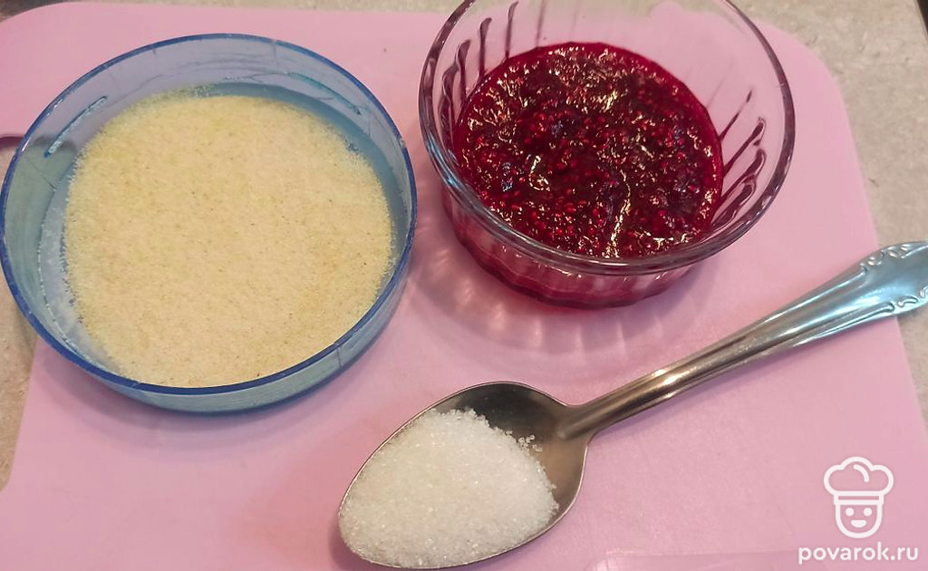 Варим манную кашу, постоянно помешивая, 10 минут. В конце добавляем варенье и все перемешиваем.