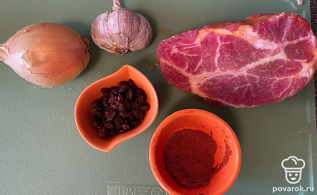 Подготовьте мясо. Приправы. Перловую крупу поставьте варить заранее.