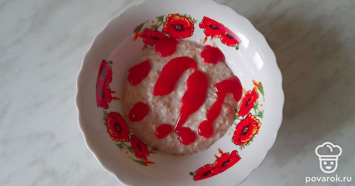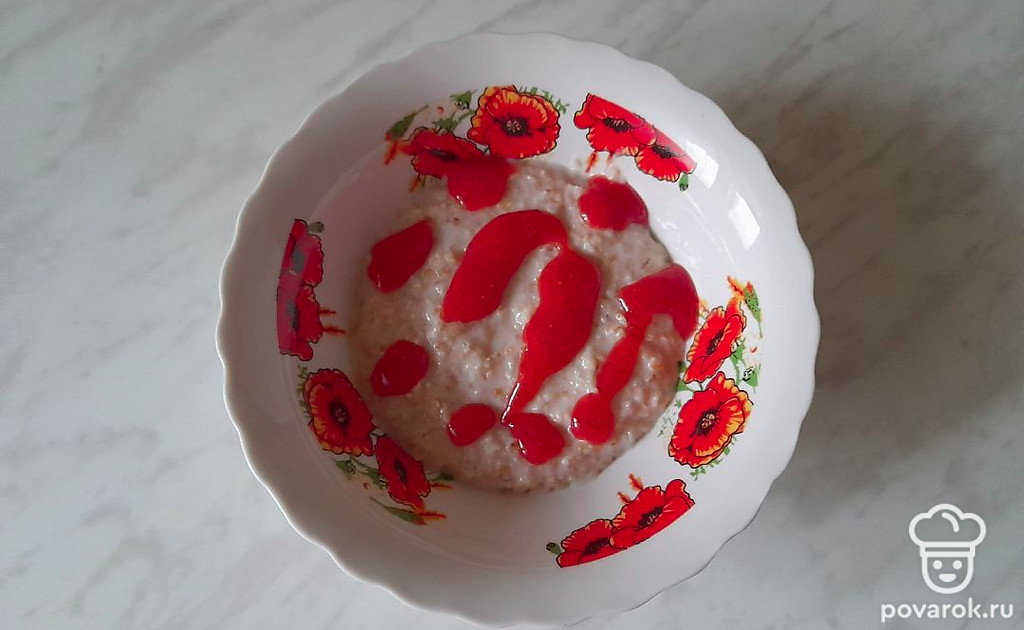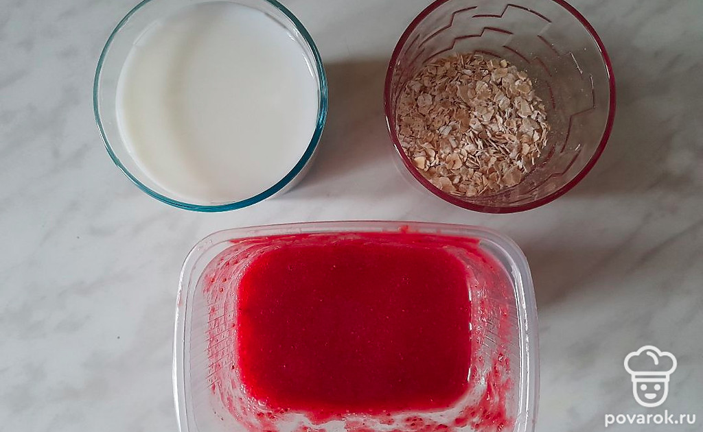 Добавьте сверху перетертую клубнику и подайте к столу. Приятного аппетита!