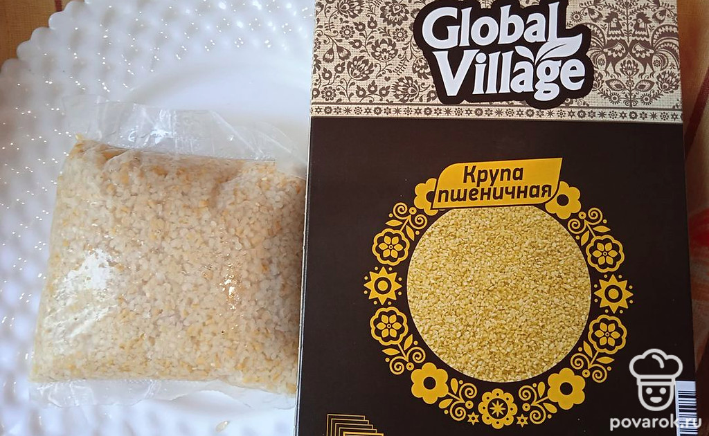 Отварите пшеничную крупу 30 минут в кипящей воде.