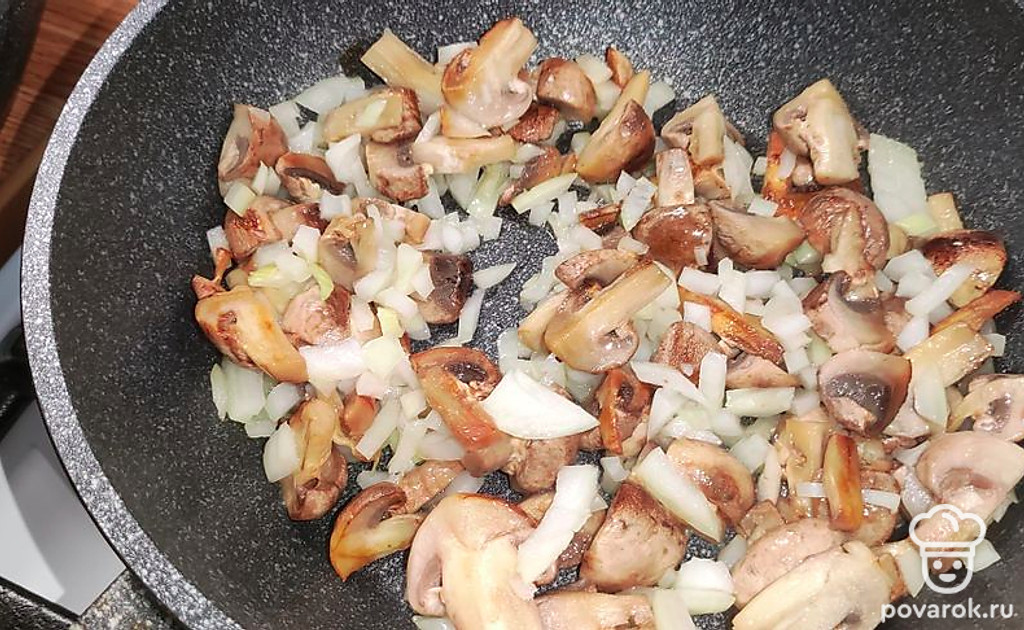 Затем добавить растительное масло и мелко нарезанный лук, протушить до готовности.