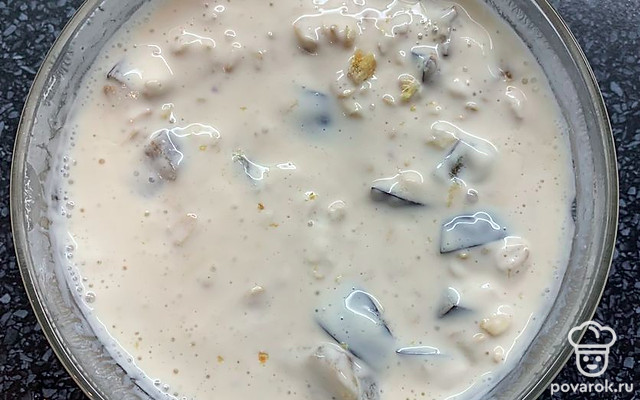 Залить ряженкой, перемешать и поставить в холодильник на 6 часов.