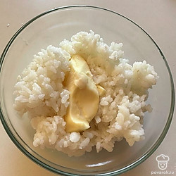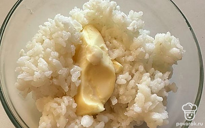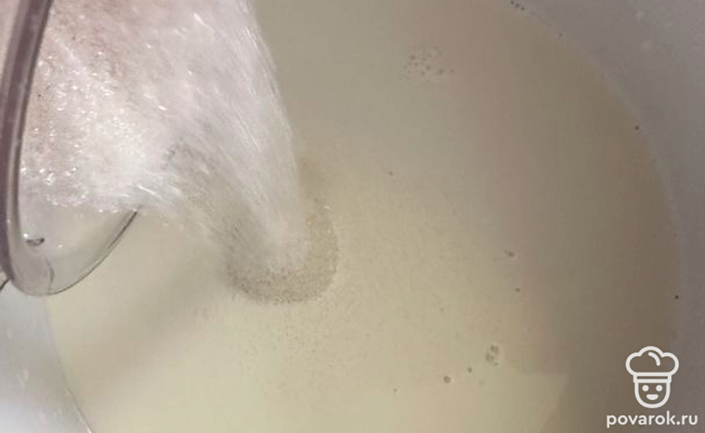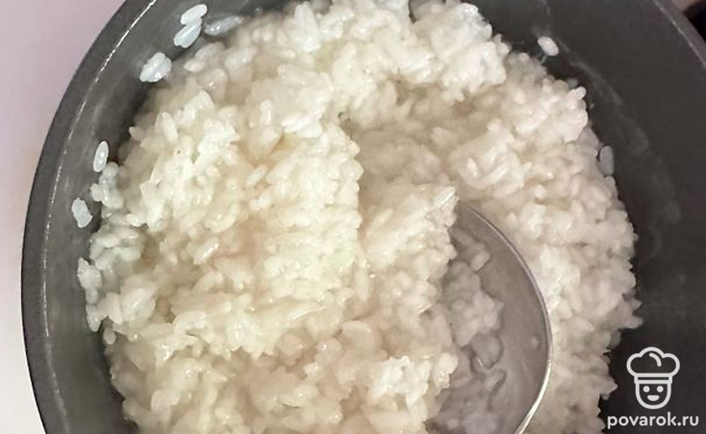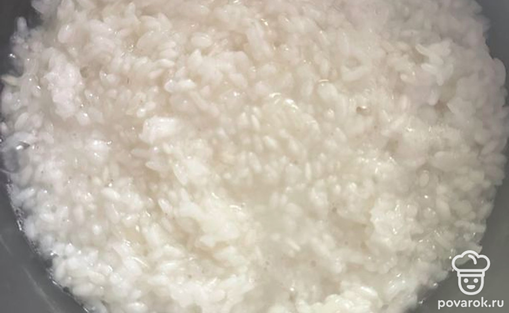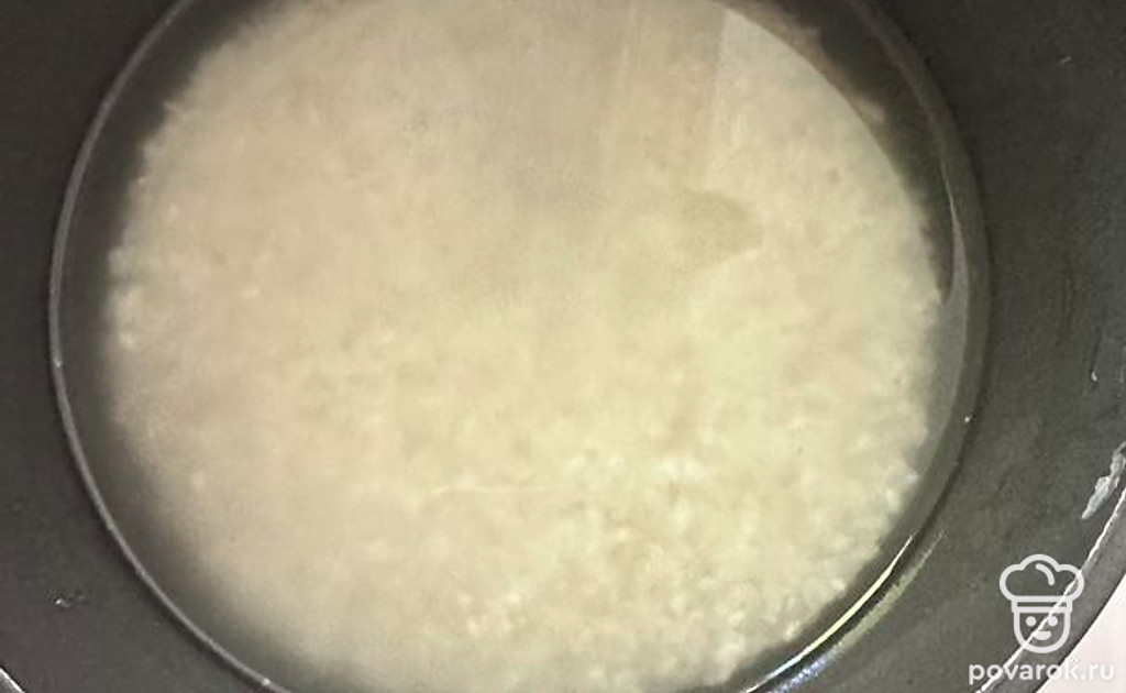 Когда вода выпарится, заливаете рис молоком и сгущенкой.