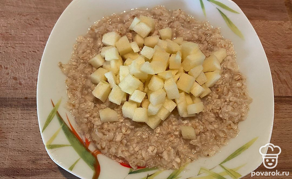 Яблоко очистите от кожуры и нарежьте кубиками.