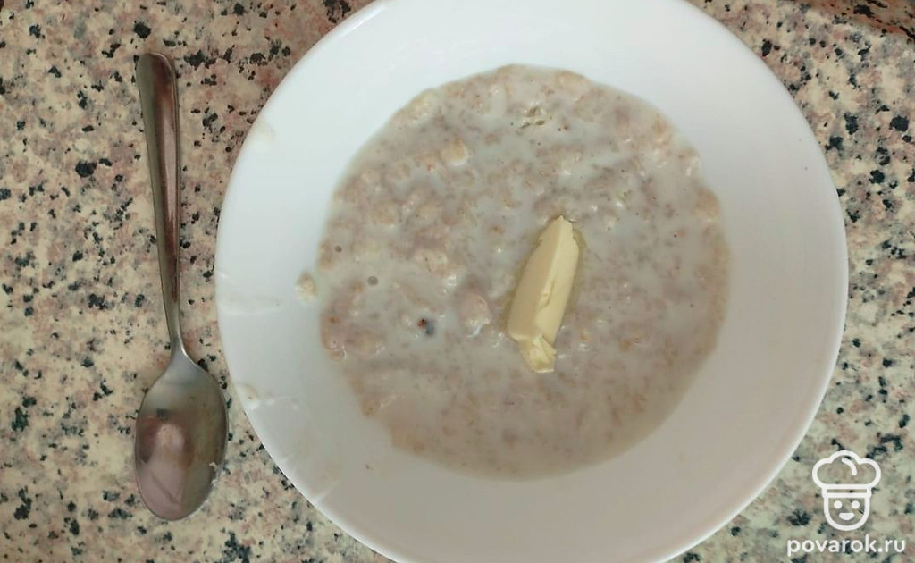 Каша готова! При подаче можно добавить в тарелку сливочное масло.