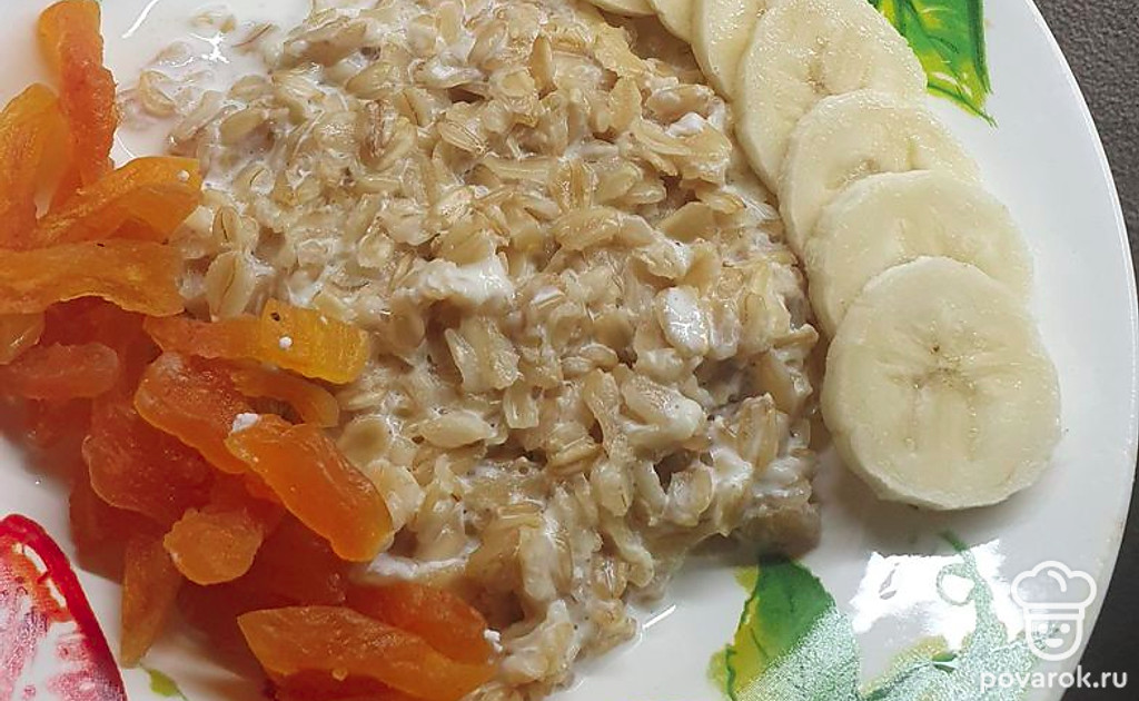 Овсяная каша на кокосовом молоке с гранатом и киви