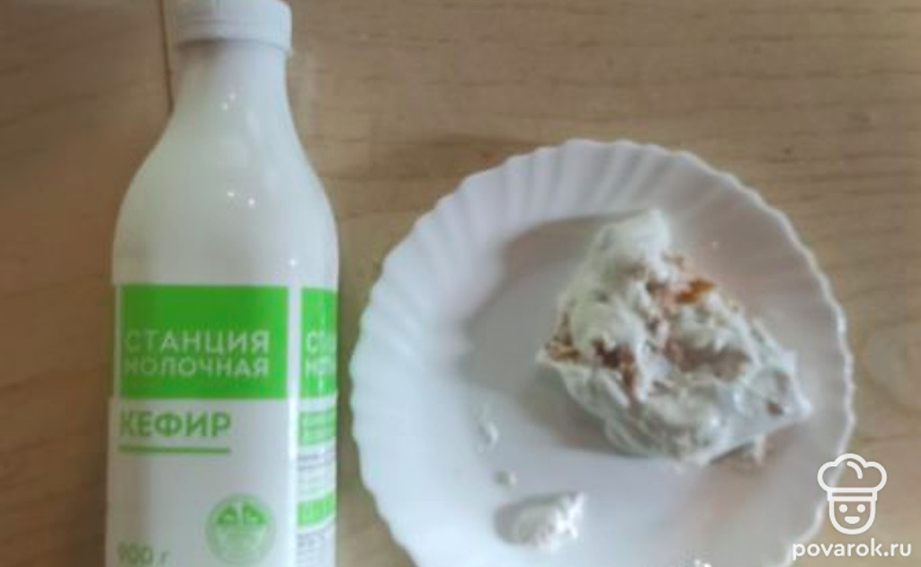 Залить кефиром и оставить на ночь.