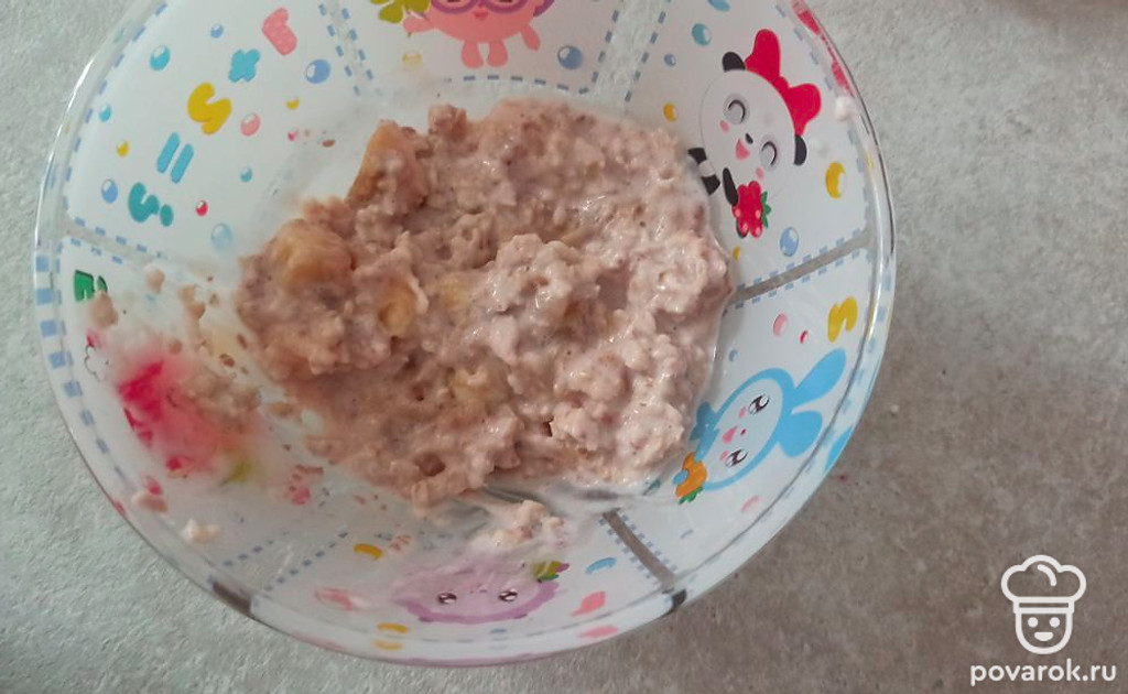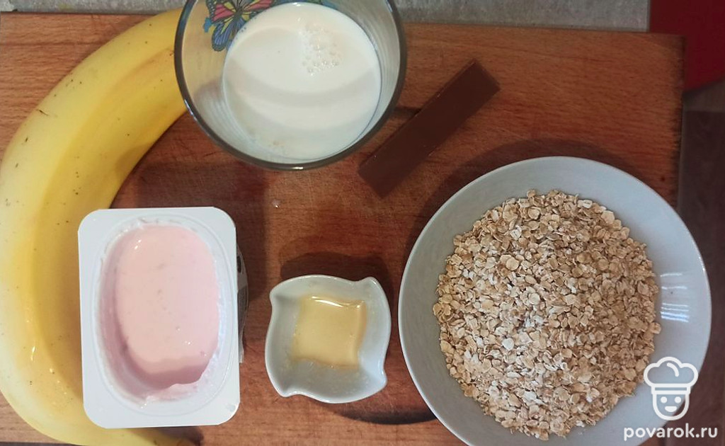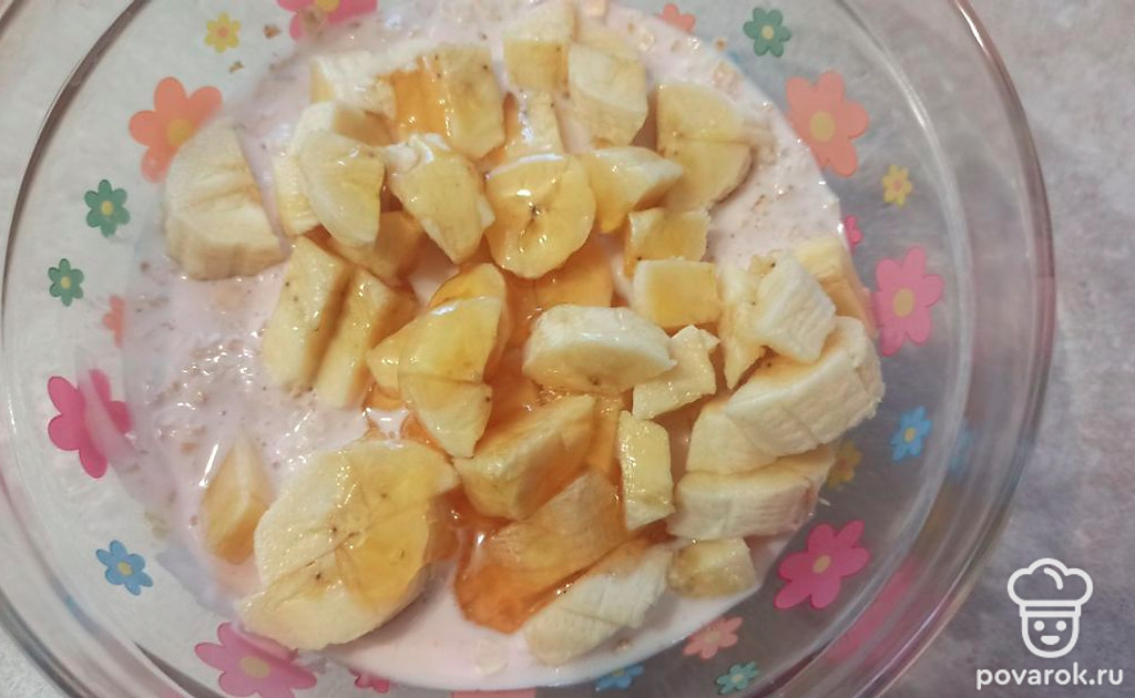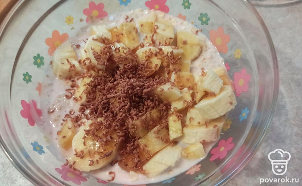 Банановая каша минутка из овсянки с медом, йогуртом и шоколадом