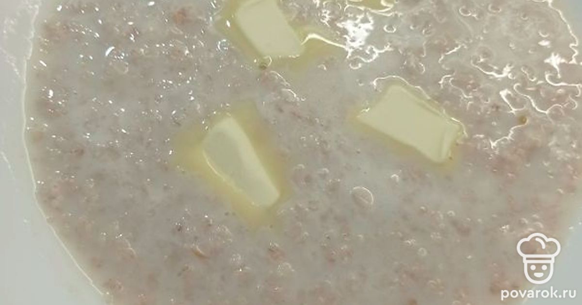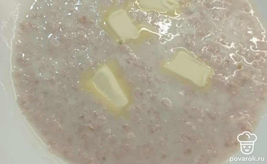 В кашу добавить сахар по вкусу и сливочное масло.
