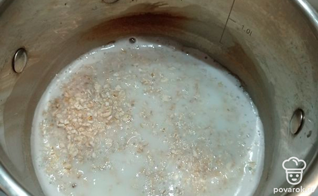 Добавить овсяные хлопья, сварить до готовности.