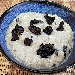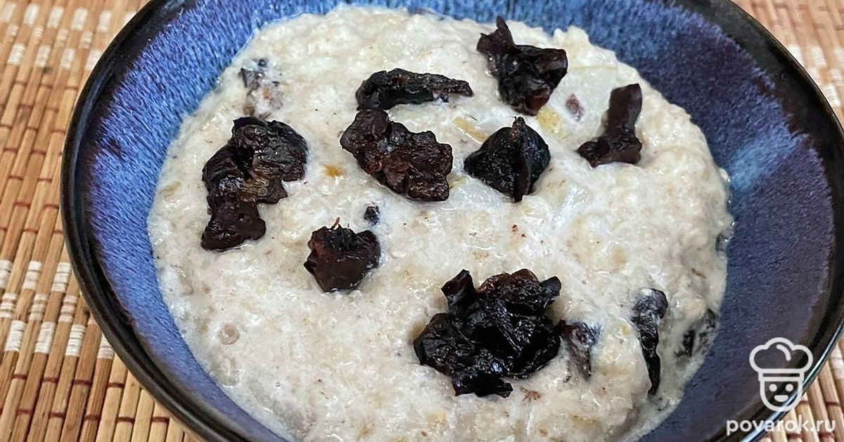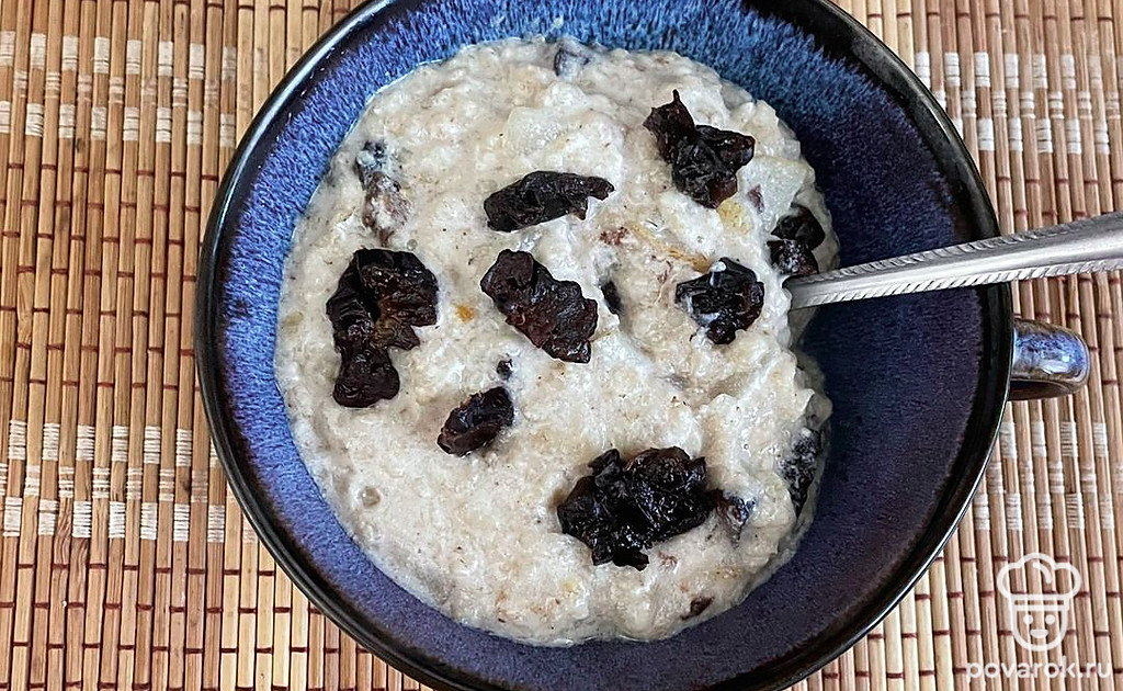 Всыпьте овсяные хлопья и нарезанный чернослив. Добавьте сахар на свой вкус. Варите 5 минут.