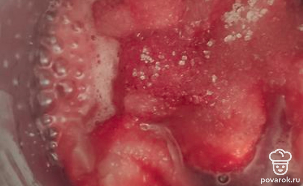 Клубнику посыпать сахаром и проварить 3-5 минут.