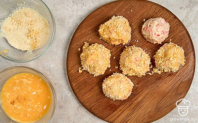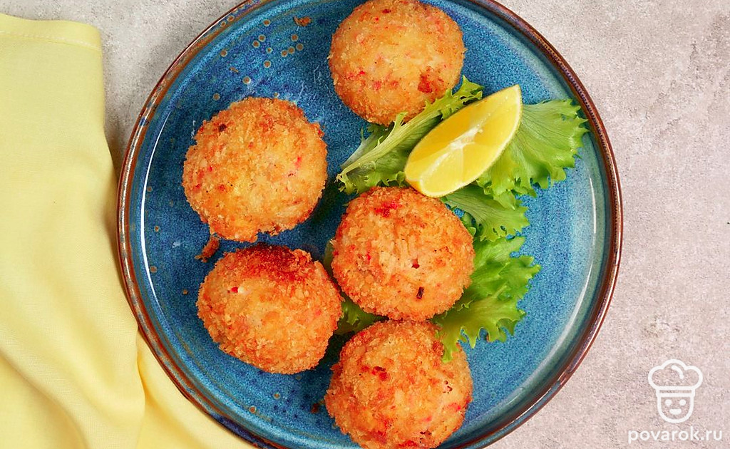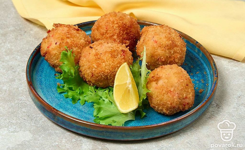 Приготовить крокеты можно не только из картофельного пюре. Не менее вкусными они получатся и из крабовых палочек. Принцип приготовления таких крокетов практически не отличается от классического. Вам точно так же нужно подготовить основу, слепить из нее шарики, запанировать их в яйцах и сухарях, а затем обжарить во фритюре. Чтобы крокеты хорошо держали форму, дополните крабовые палочки соусом бешамель. Только следите за тем, чтобы он получился не слишком жидким.