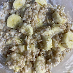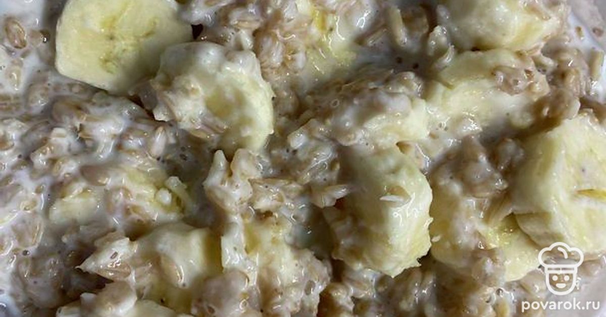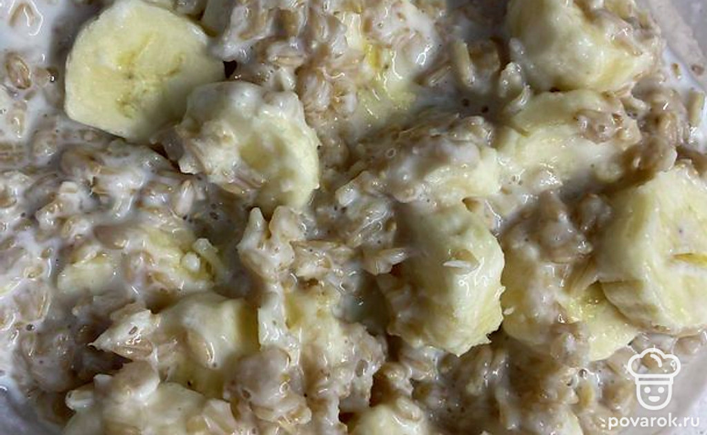 Выложить в тарелку кашу и добавить в неё порезанный банан.
