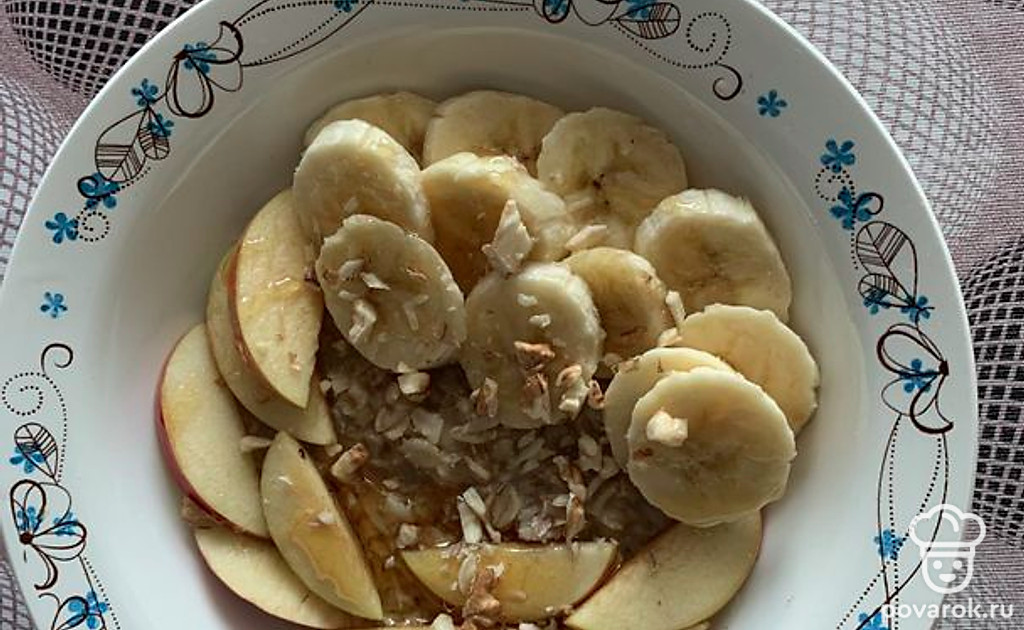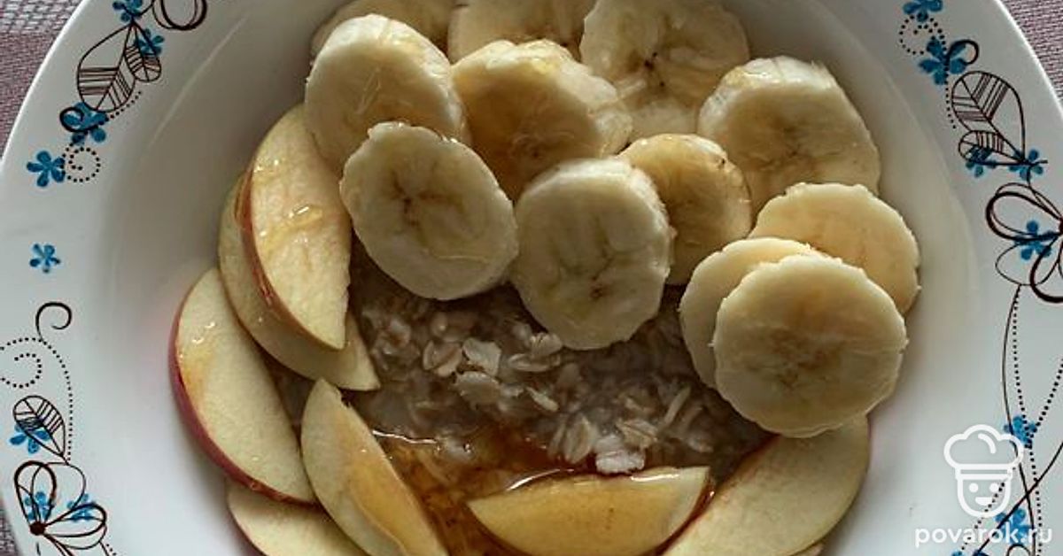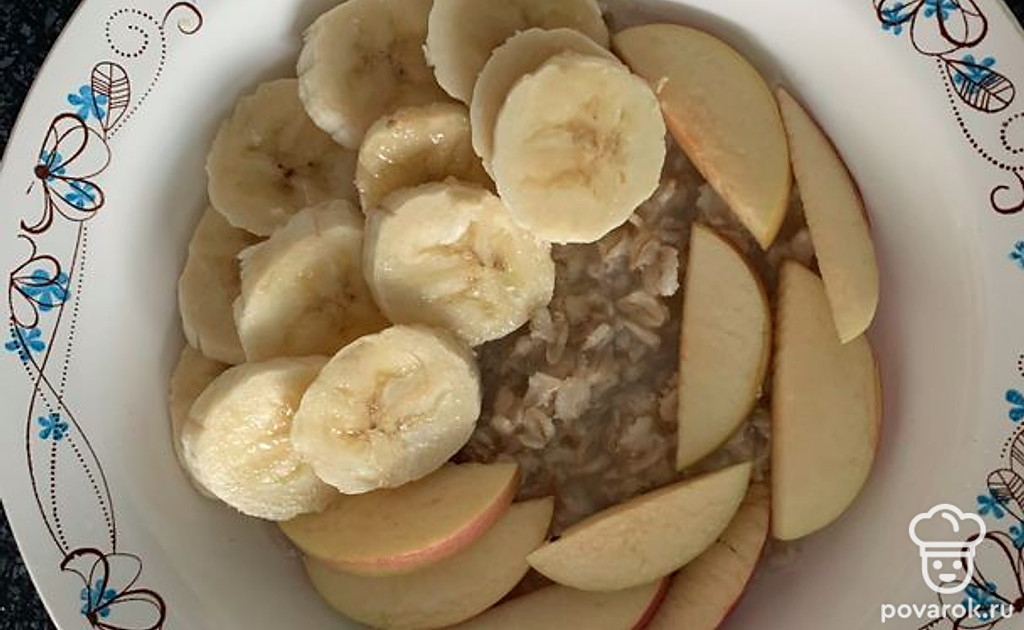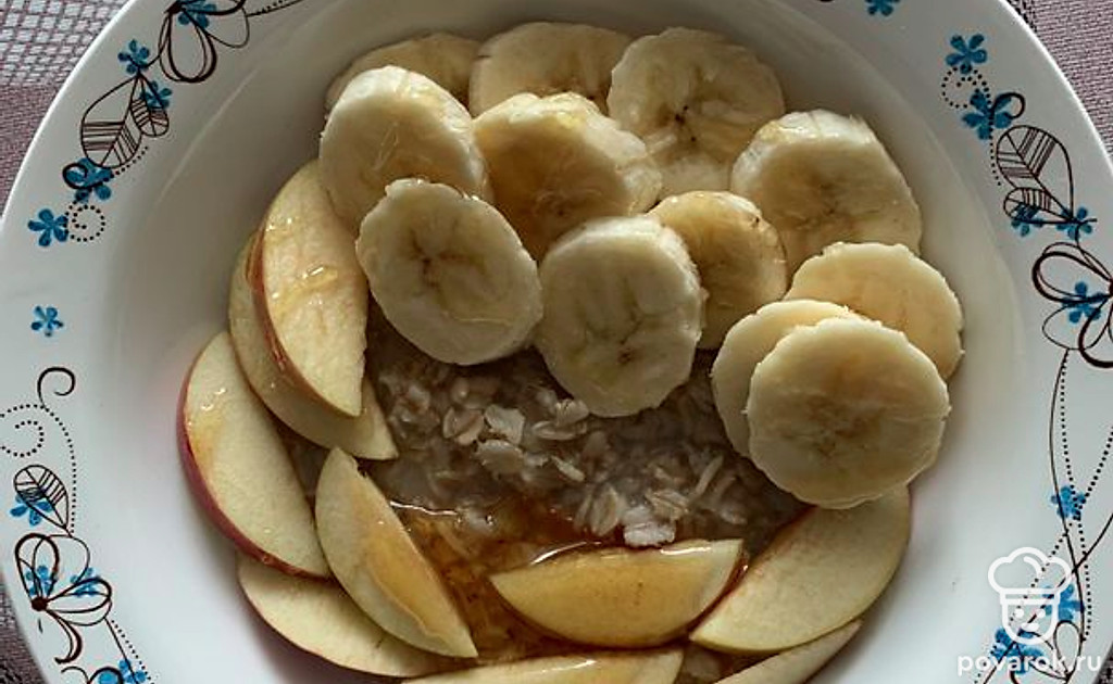 Что бы разнообразить обычную овсянку, подаём ее с фруктами вкусно и полезно.