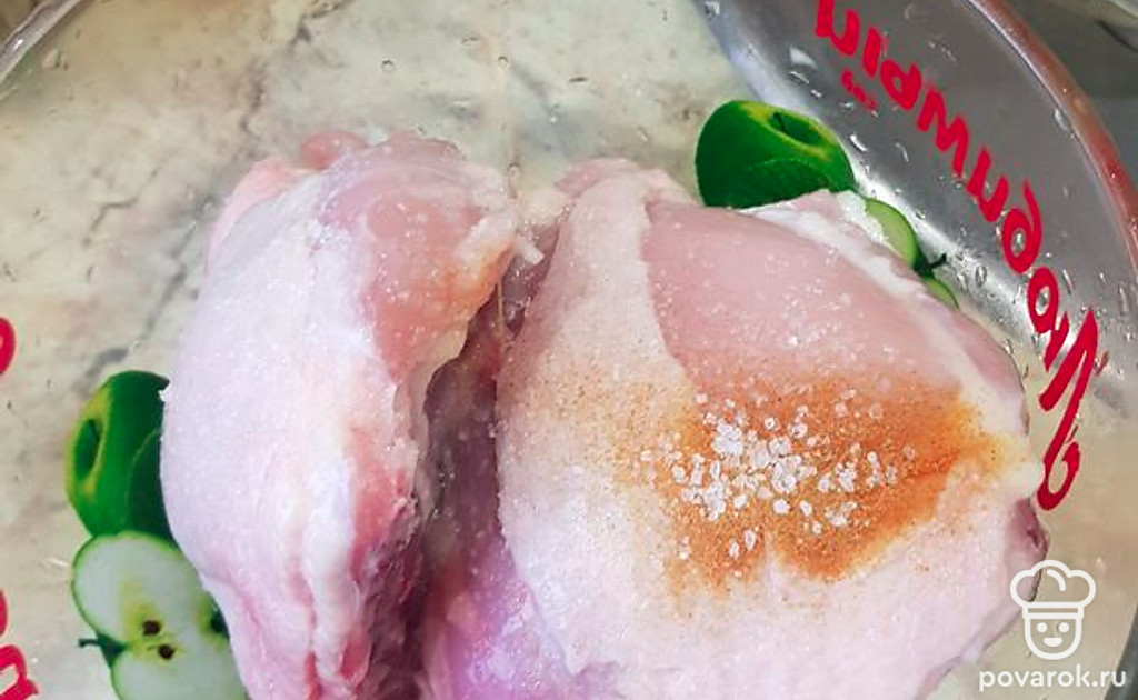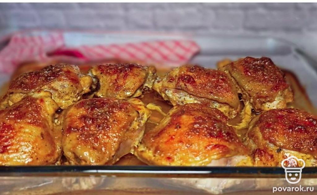 Отправить куриные бедрышка на пергаменте в духовку на 30 минут при 180 градусах.