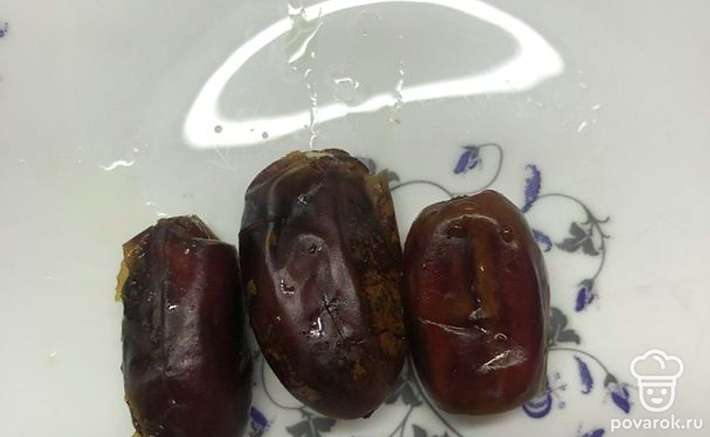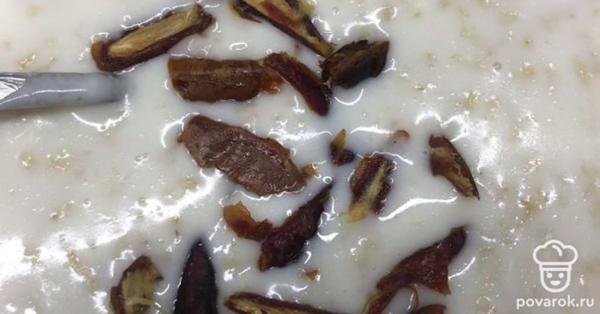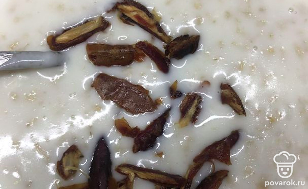Финики промыть, нарезать мякоть и добавить порционно в тарелку с кашей.