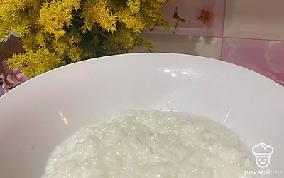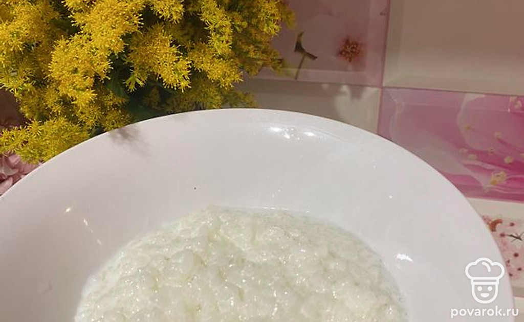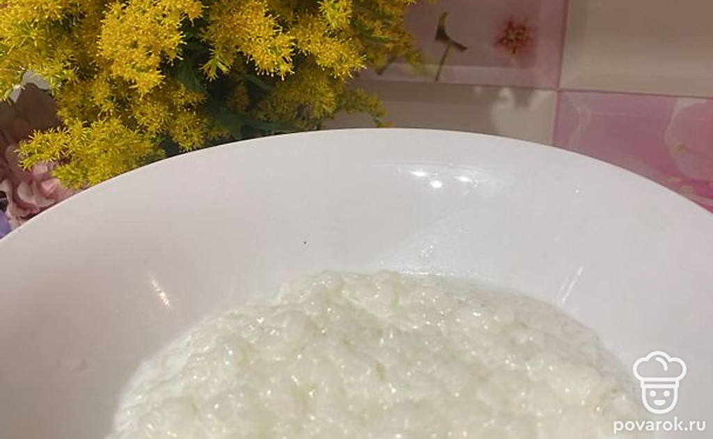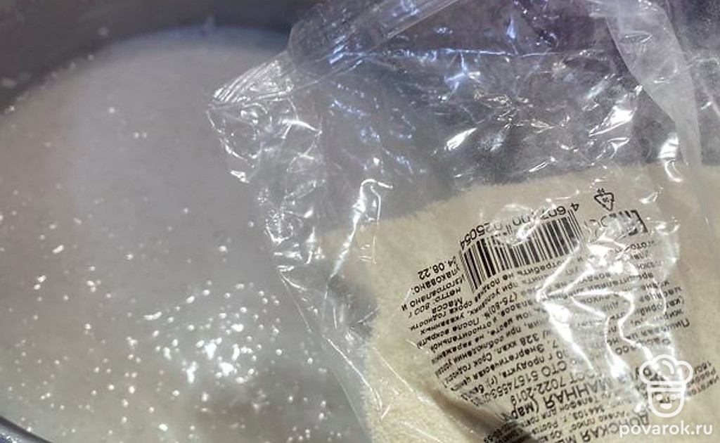 Добавляем манную крупу. Варим 3 минуты. Накрываем крышкой.