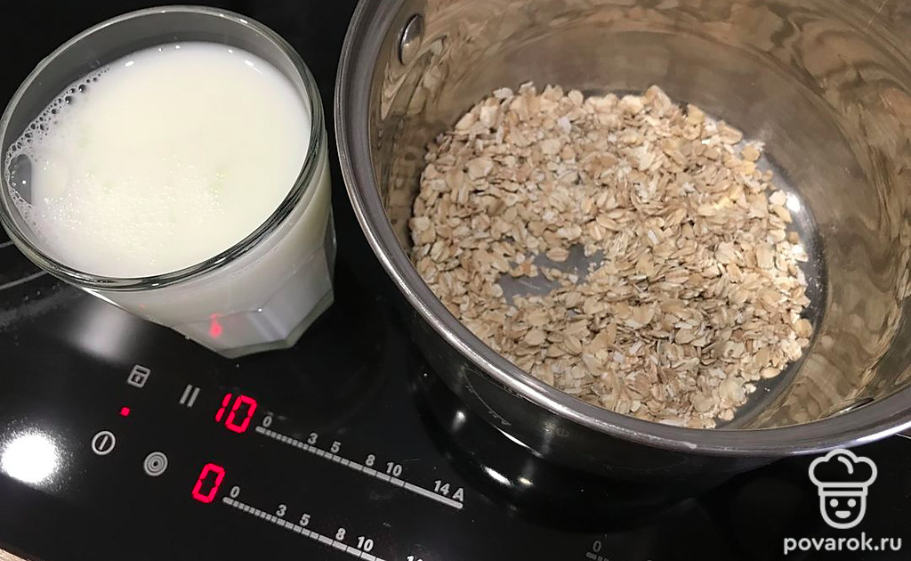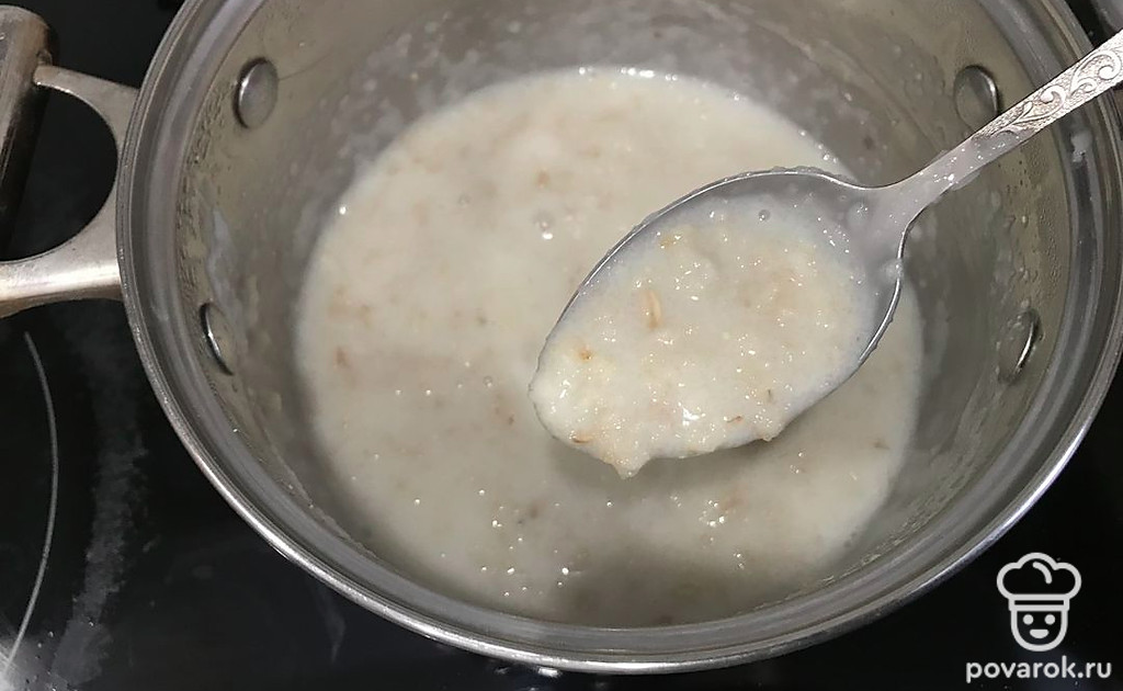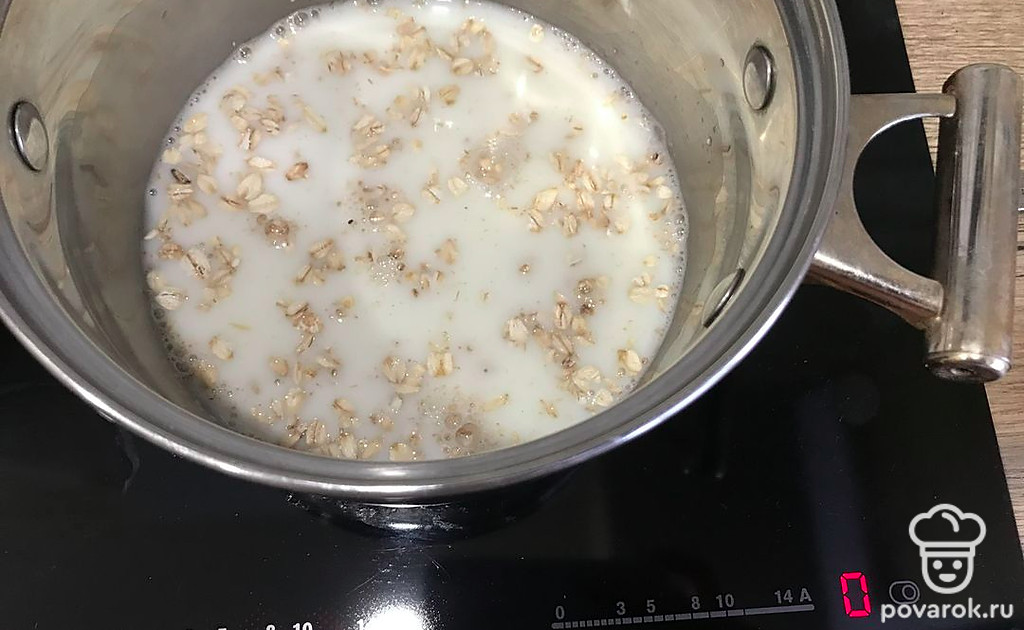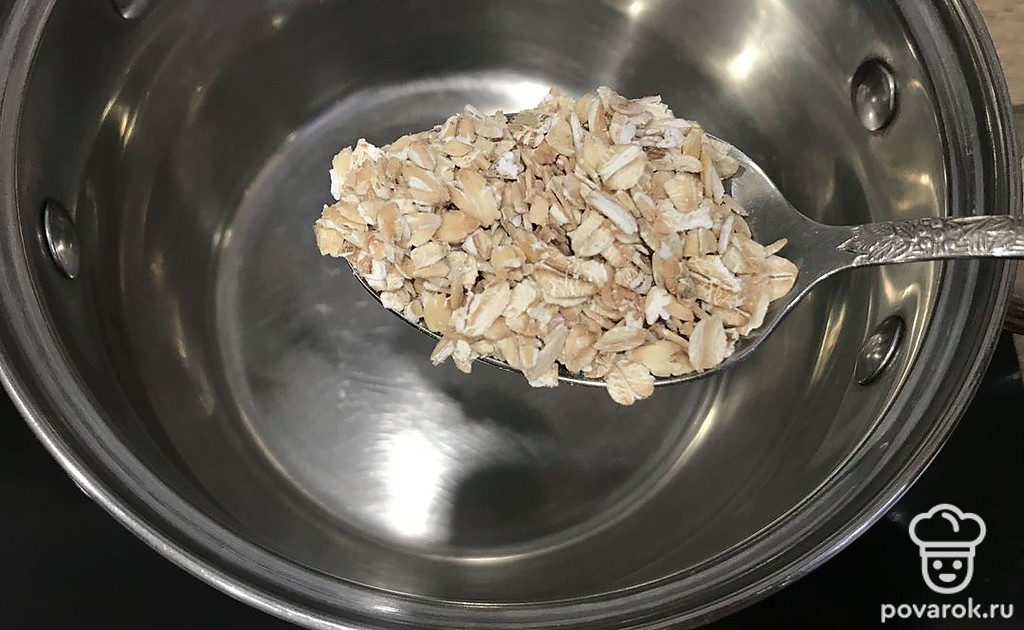 В сотейник добавьте 5 столовых ложек овсяной крупы.
