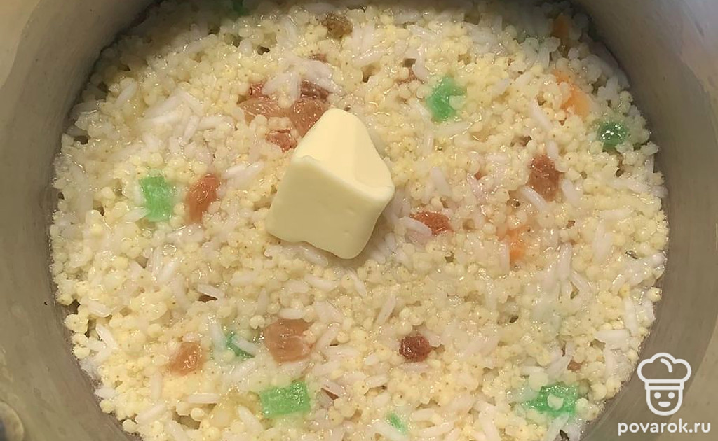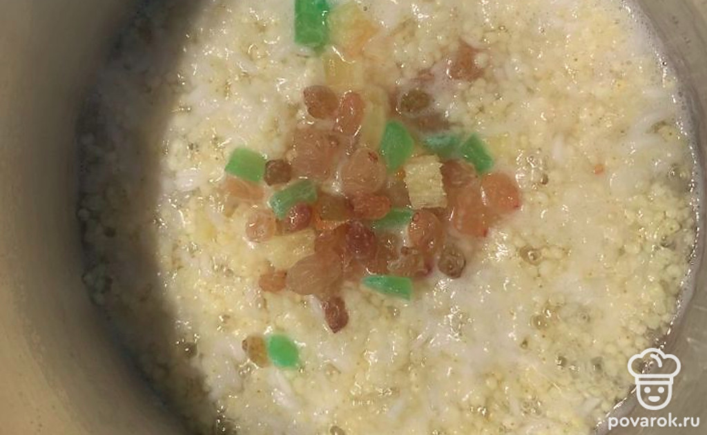 Каша «Дружба» с цукатами и изюмом в мультиварке