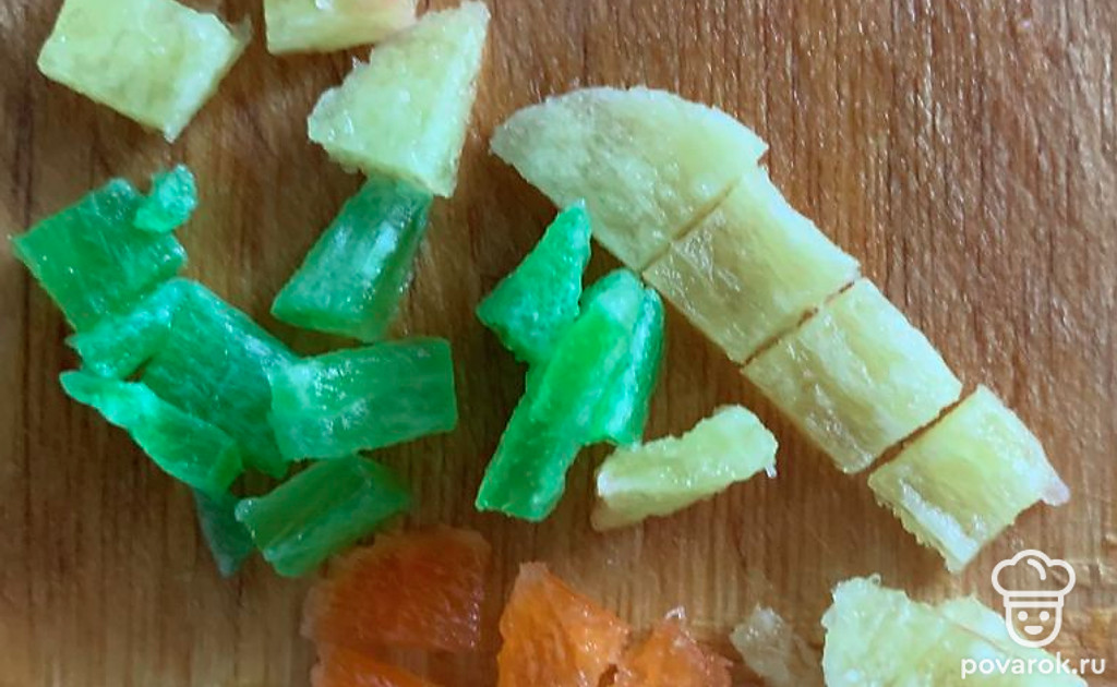 Цукаты режем на кусочки.