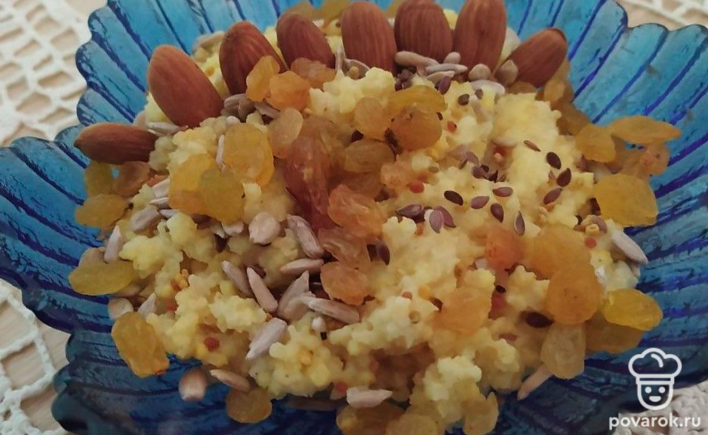 Пшенная крупа знакома всем еще с детства. Обычно такую крупу готовят на молоке или воде путем варки. В саму кашу добавляют разные сухофрукты, например, изюм, вишню или чернослив, а также различные орехи. Такая каша идеально подойдет на завтрак, так как такой сложный углевод богат белком, витаминами группы B и различными микро и макроэлементами.