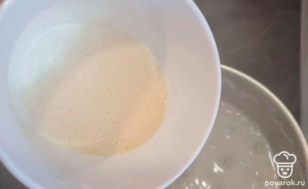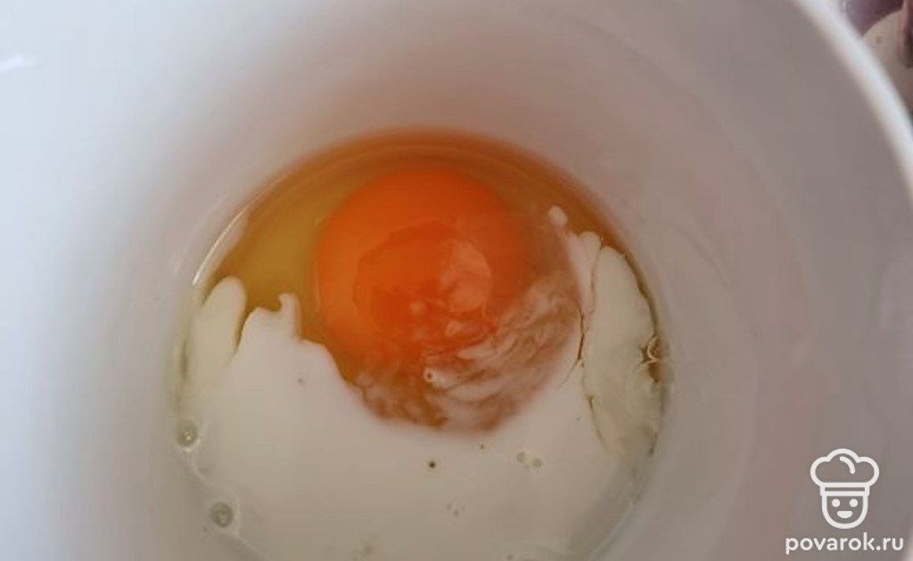Хорошо взбиваем 1 яйцо, 1 ст.ложку сахара с оставшимся молоком (40 г).