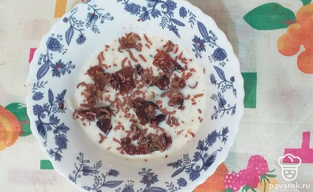 Что может быть лучше каши на завтрак? Овсяная каша на молоке – простой, вкусный завтрак. Варится она очень быстро, полезна и питательна. Овсяная каша отлично сочетается с фруктами, сухофруктами, орехами, шоколадом. Сегодня приготовим овсяную кашу на молоке с финиками и шоколадам. Благодаря сладости фиников, сахар в кашу добавлять не будем.